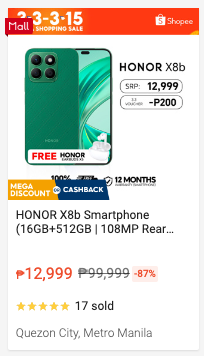 It is currently on sale at the Honor official store on Shopee.