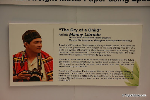 EPSON recently launched Environmental Advocacy program in cooperation with SM Super Malls. They featured a photo exhibit featuring the Epson PRO, a group of renowned Pinoy Photographers and Graphics designers. These top-caliber artists are Bien Bautista, George Tapan, Pancho Escaler, Manny Librodo, Lito Sy, Drew Europeo, & Robert Alejandro.