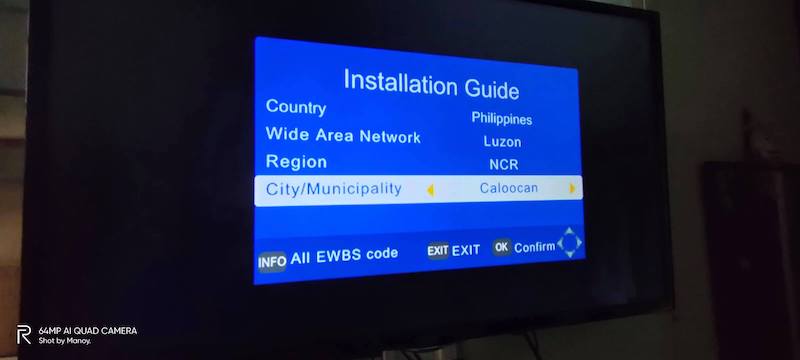 The next step should be to scan the channel. You’ll be greeted with this “Installation Guide” on the screen. You have to select the location using the remote control provided.