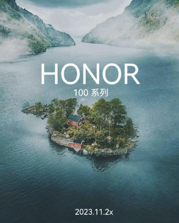 The ad shows the Honor logo for the new 100 series phones and a tiny island in a lake surrounded by mountains, which could be the camera bump. The back design is the other thing to look at from the promotional image. Design-wise, the Honor digital series has always been on style, and the Honor 100 might be no different.