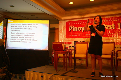 Familiar and famous names were present there like Ira Panganiban talked about Bloggers as Media Practitioners, Ms. Yvonne Chua of Vera Files talked about Creating a Bloggers’ Code of Ethics, and Abe Olandres who talked about Optimizing the Economic Potential of your Blog.