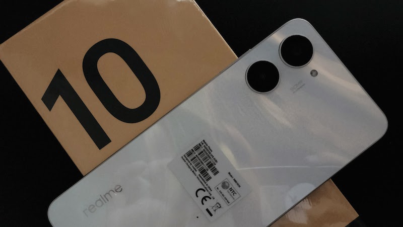 Like the rest of the realme 10, our test unit, including the ones that will be available in the market will be available in two eye-catching colors: Rush Black and Crash White. On the back of the box, standard technical parameters are provided, while the front has a large number 10 and the brand name in realme yellow.